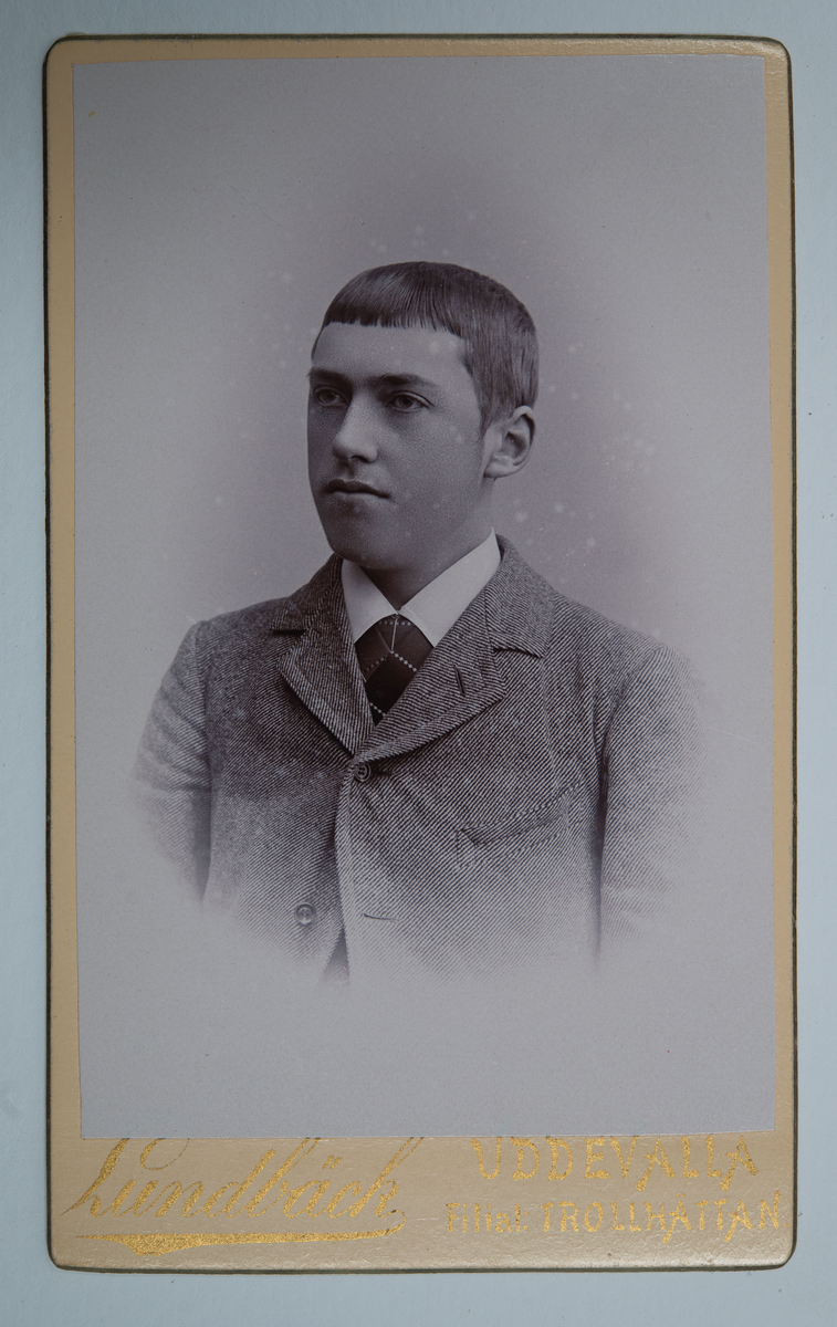 Visitkortsporträtt av okänd man. Fotografiet sitter i fotoalbum som tillhört Gertrud Zachau. Fotografiet sitter på sida 8.