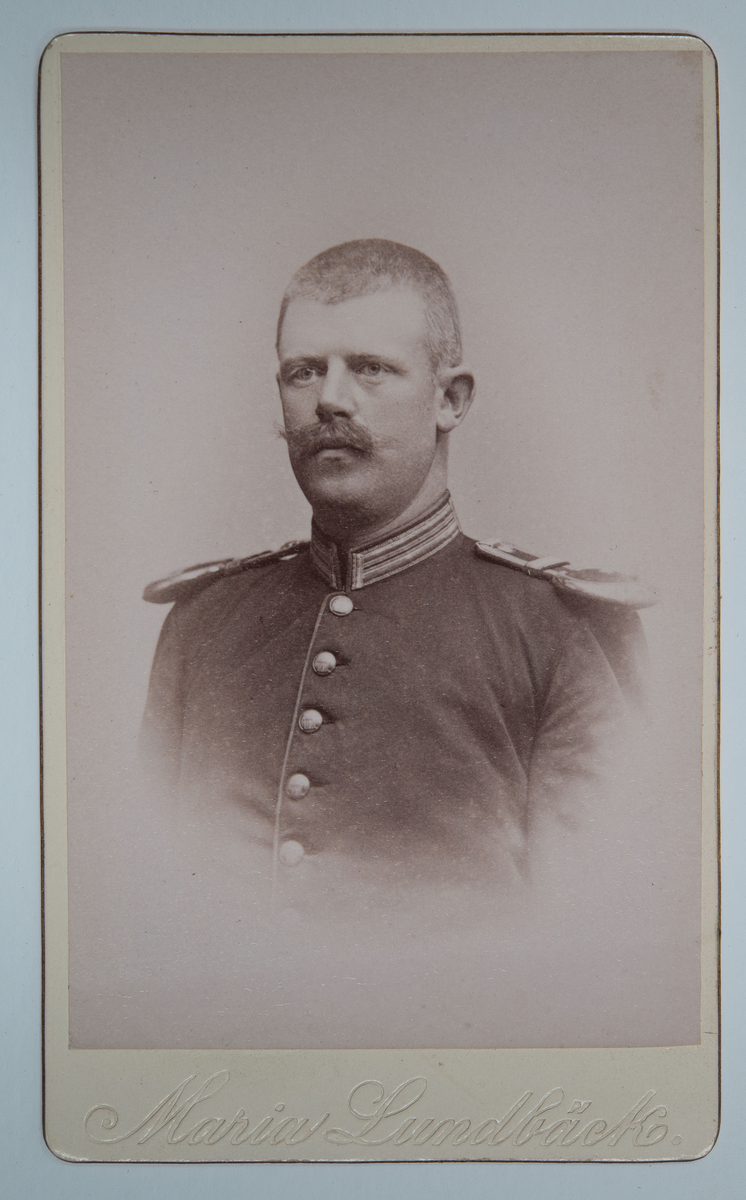 Visitkortsporträtt av kapten Henning Natt och dag. Fotografiet sitter i fotoalbum som tillhört Gertrud Zachau. Fotografiet sitter på sida 11.