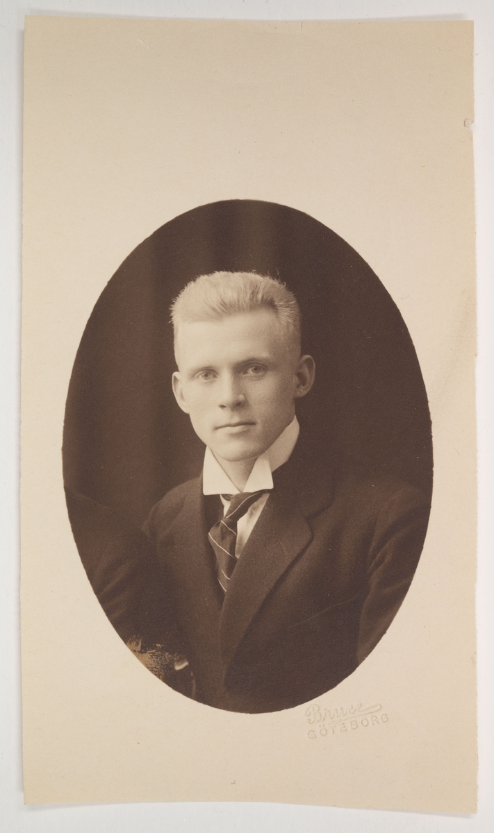 Visitkortsporträtt av Sten Lundqvist. Fotografiet sitter i fotoalbum som tillhört Gertrud Zachau. Fotografiet sitter på sida 36.
