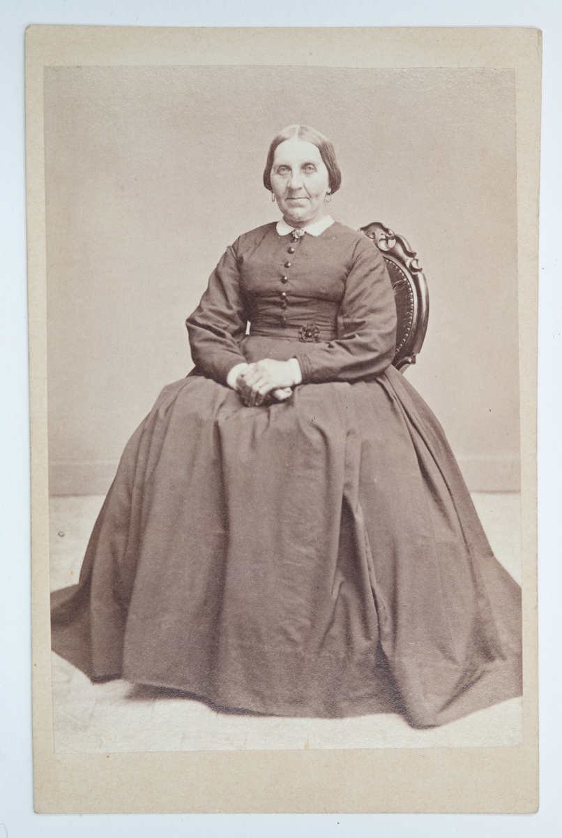 Visitkortsporträtt av okänd kvinna. Fotografiet sitter i fotoalbum som tillhört Gertrud Zachau.