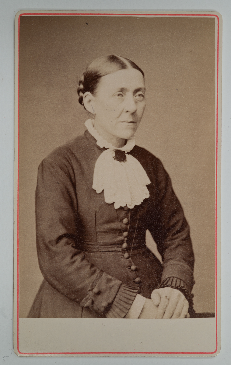 Visitkortsporträtt av okänd kvinna. Fotografiet sitter i fotoalbum som tillhört Gertrud Zachau.