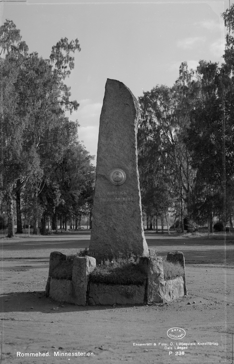 Minnesstenen, monument med text: Kungliga Dalregementet, Rommehed, Borlänge.
