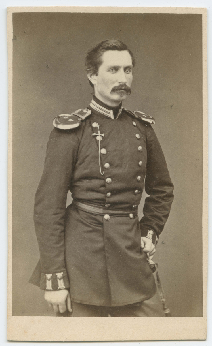 Porträtt på Major Per Salomon Mannerstedt. Född 4 februari år 1836 på Röksberg i Mulseryds socken. Död 3 maj år 1915 på Ed Voxtorps socken,