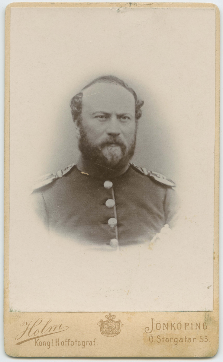 Porträtt på Major Ludvig, Wilhelm Munthe. Född år 1804. På kloster i Vena socken död 5 december år 1861 på Sörgården i Rogberga socken.