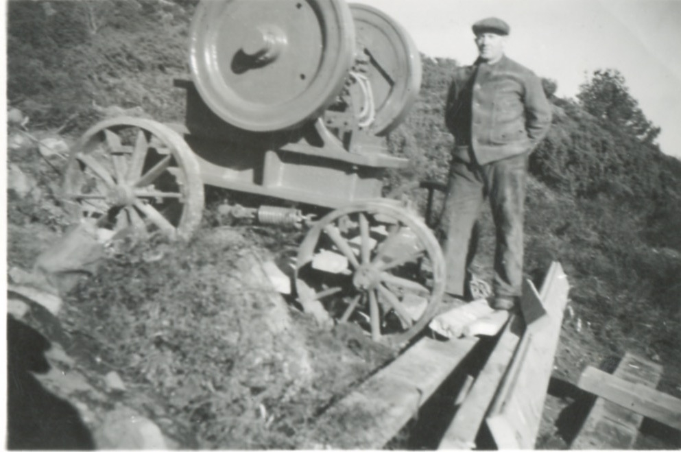 En okänd man står vid ett stenbrott, Backen okänt årtal.