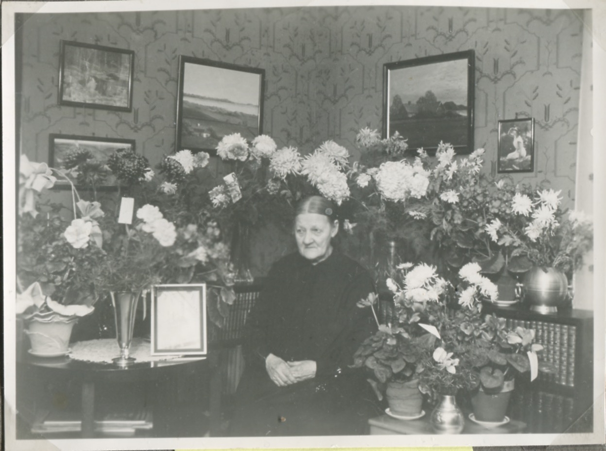 Josefina Johansson (1860 - 1941) uppvaktas i hemmet, Alegårdsslätt i Fässberg okänt årtal. Hon var moster till Svea Johansson.