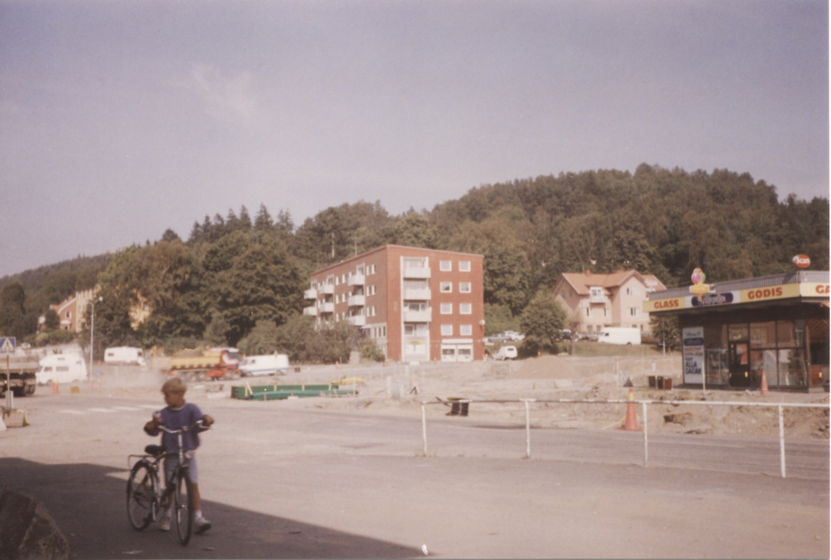 Kållereds centrum cirka 1990. I bakgrunden rakt fram ses lägenheterna på Streteredsvägen 1A - 1G och till höger ses "Hemmet".
