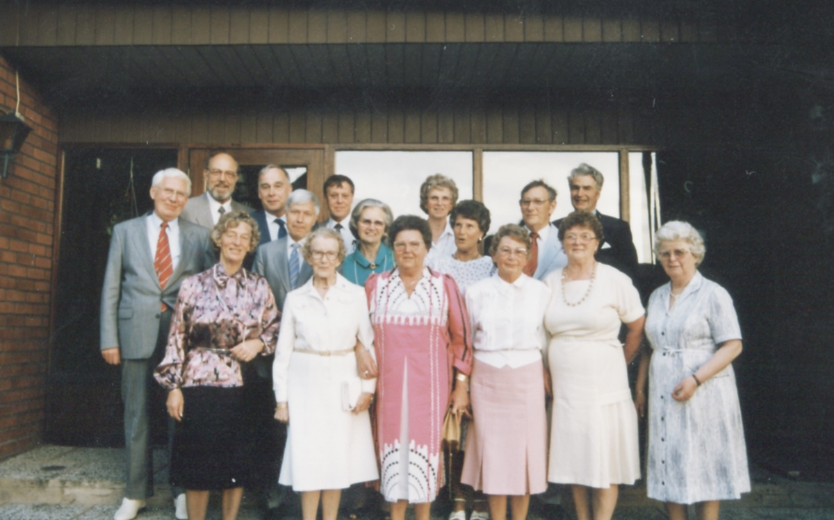 Skolträff, för elever födda 1924, i Kållereds värdshus på Gamla Riksvägen 44, okänt årtal. Bakre rad från vänster: 1. Okänd. 2. Carl Erik Jarlsmark. 3. Okänd. 4. Okänd. 5. Okänd. 6. Gunvor "Lolo" Jarlsmark. 7. Okänd. 8. Okänd. 9. John Adolfsson. 10. Karl Gustaf Pettersson.