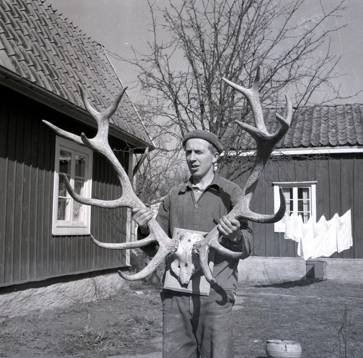 G E Bergkvist eller Lennart Bergkvist i Högsrum med Sveriges största kronhjortshorn.