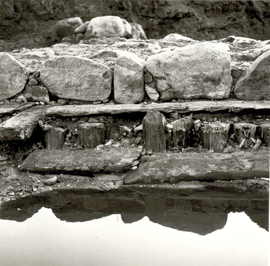Arkeologisk utgrävning inför byggandet av nya landstingshuset. En del av bastionsmuren och rustbädden.