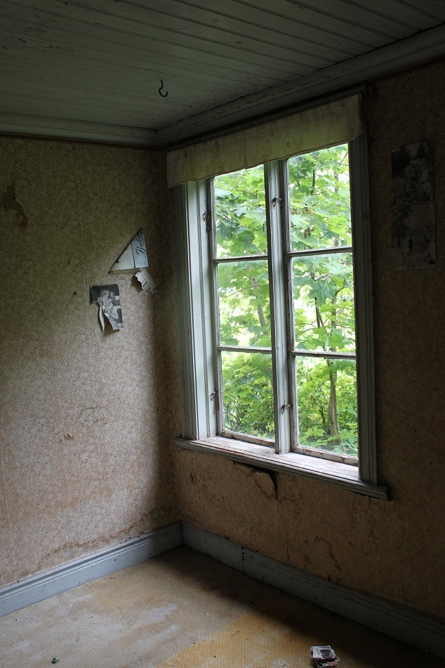 Gården Smass i Säljan. Sommarstugan, kök med tapet från 1930-talet.