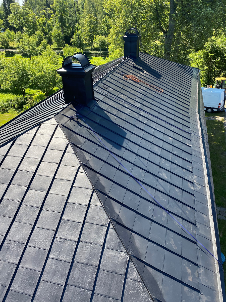 Det falsade plåttaket på Gästrumsflygeln öster om Mackmyra herrgård.