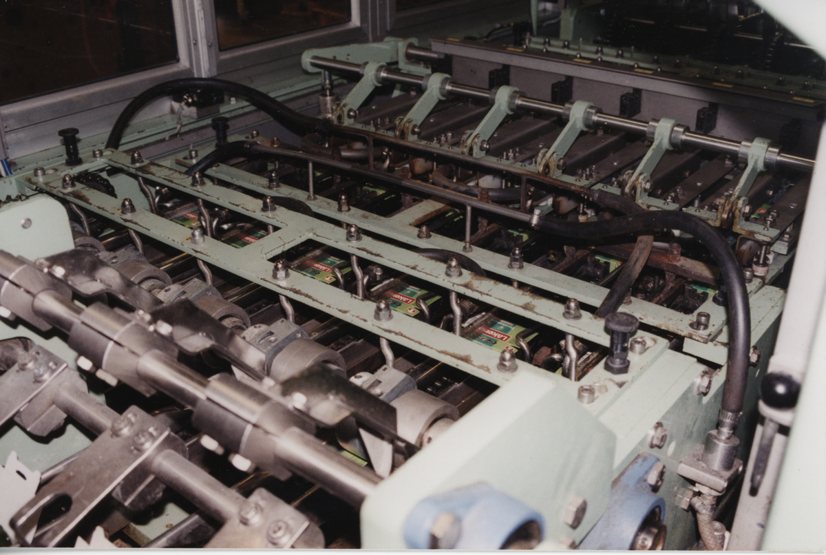 Del av Flip Top maskinen. Askämnen fylls med tabletter och limmas ihop maskinellt.
