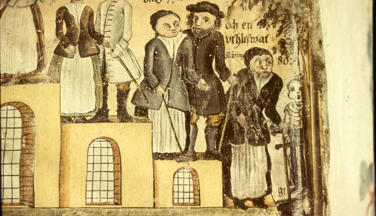 Titel: Del av väggdekor. Ålderstrappa. Illustration av livet från födsel till död.