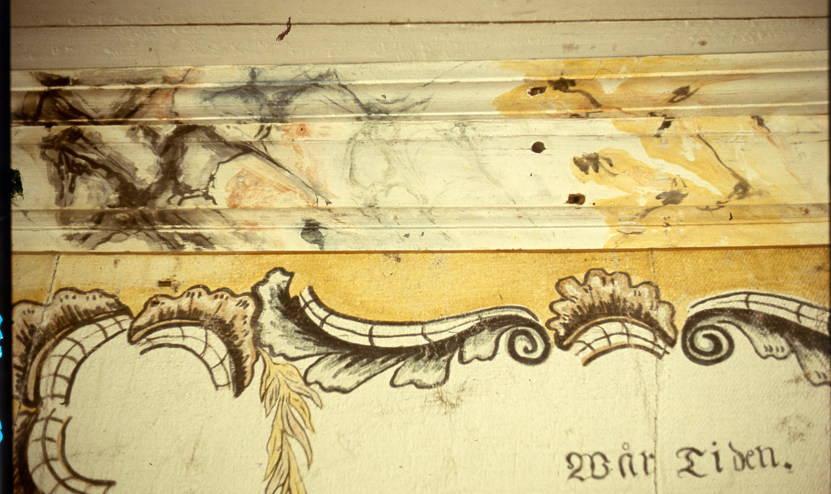 Målad taklist och del av väggdekor.