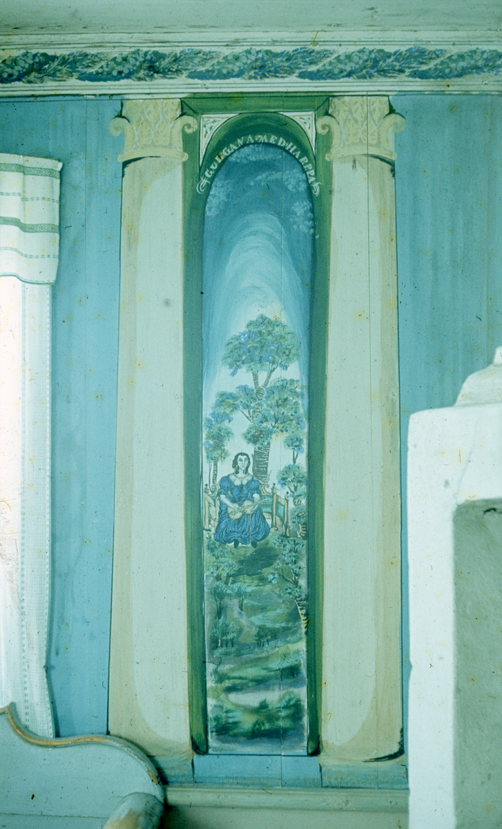 Väggmålning "... med harppa" (harpa). Kvinna med instrument.