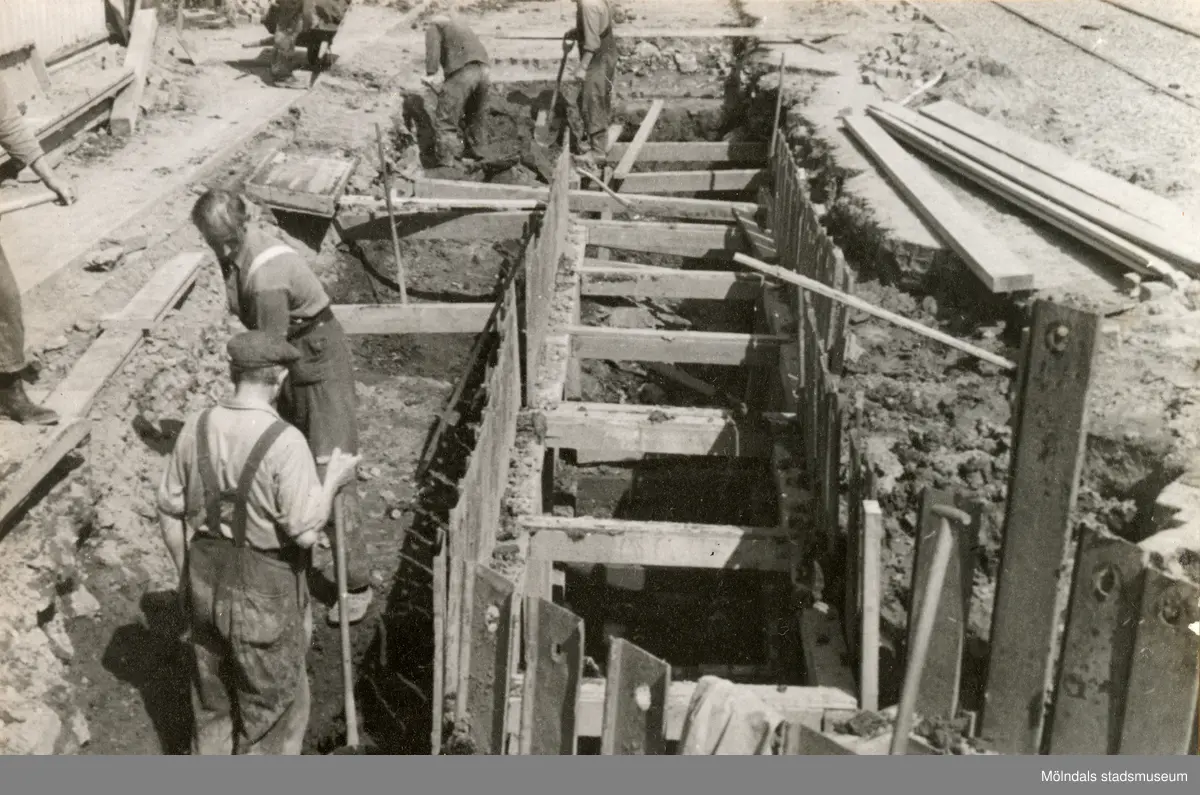 Grävarbete vid Göteborgsvägen i Mölndal, okänt årtal.