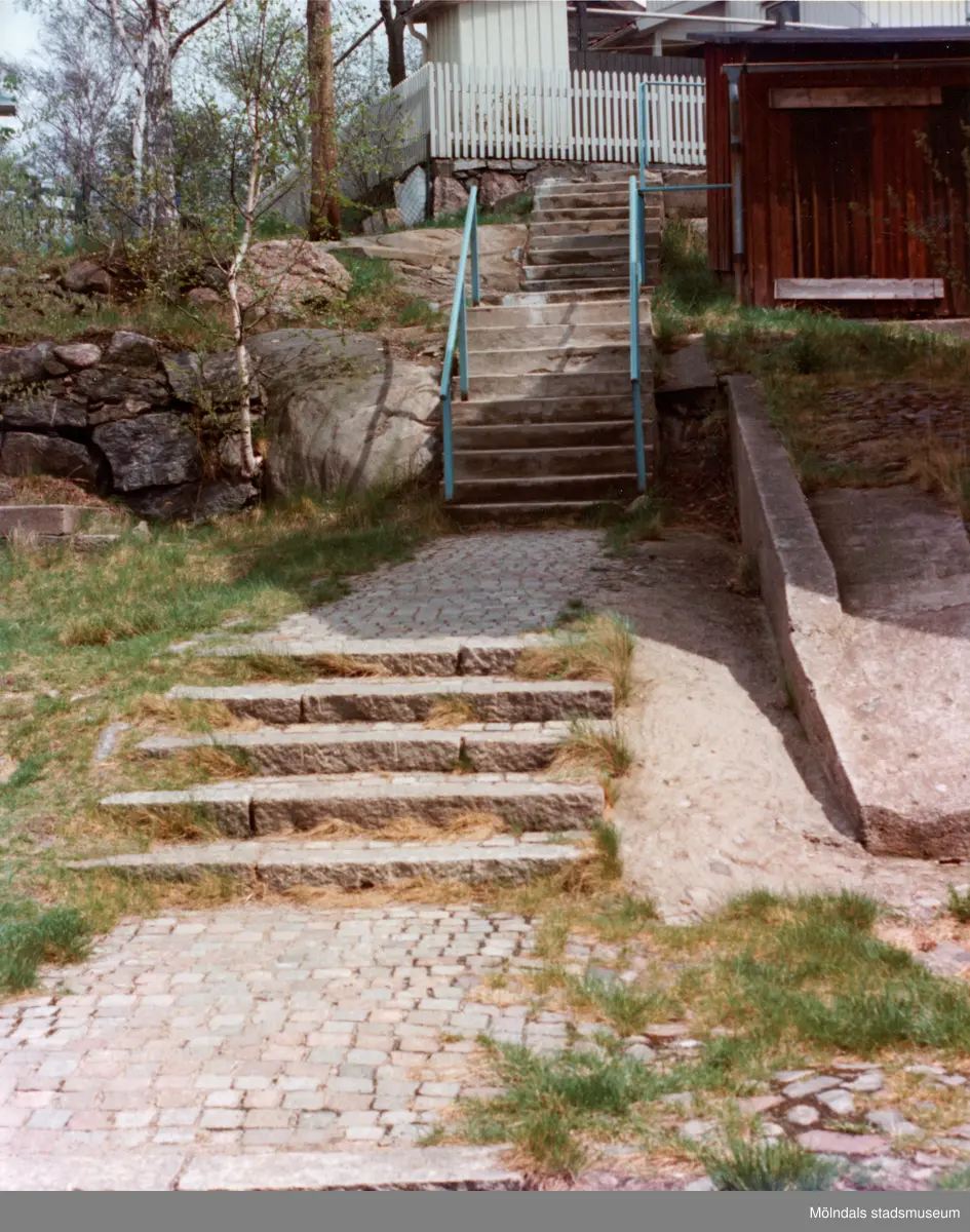 Stalleliden i Mölndals Kvarnby, omkring 1975-1980. I mitten Roten M 30. Till höger vedboden till Roten M 27.