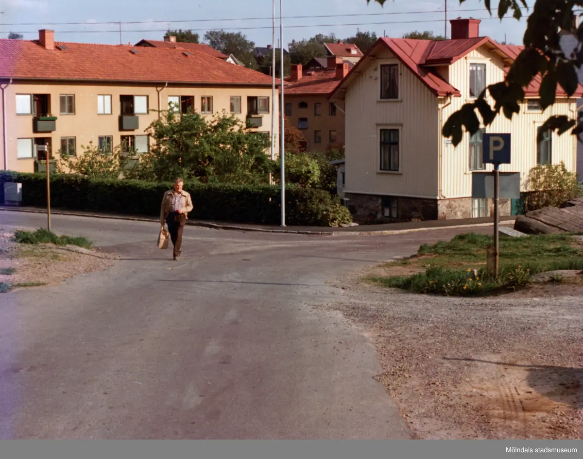 Ryet i Mölndal, omkring 1975-1980. Vy från Franckegatan mot hörnet Brunnsgatan-Svanegatan.