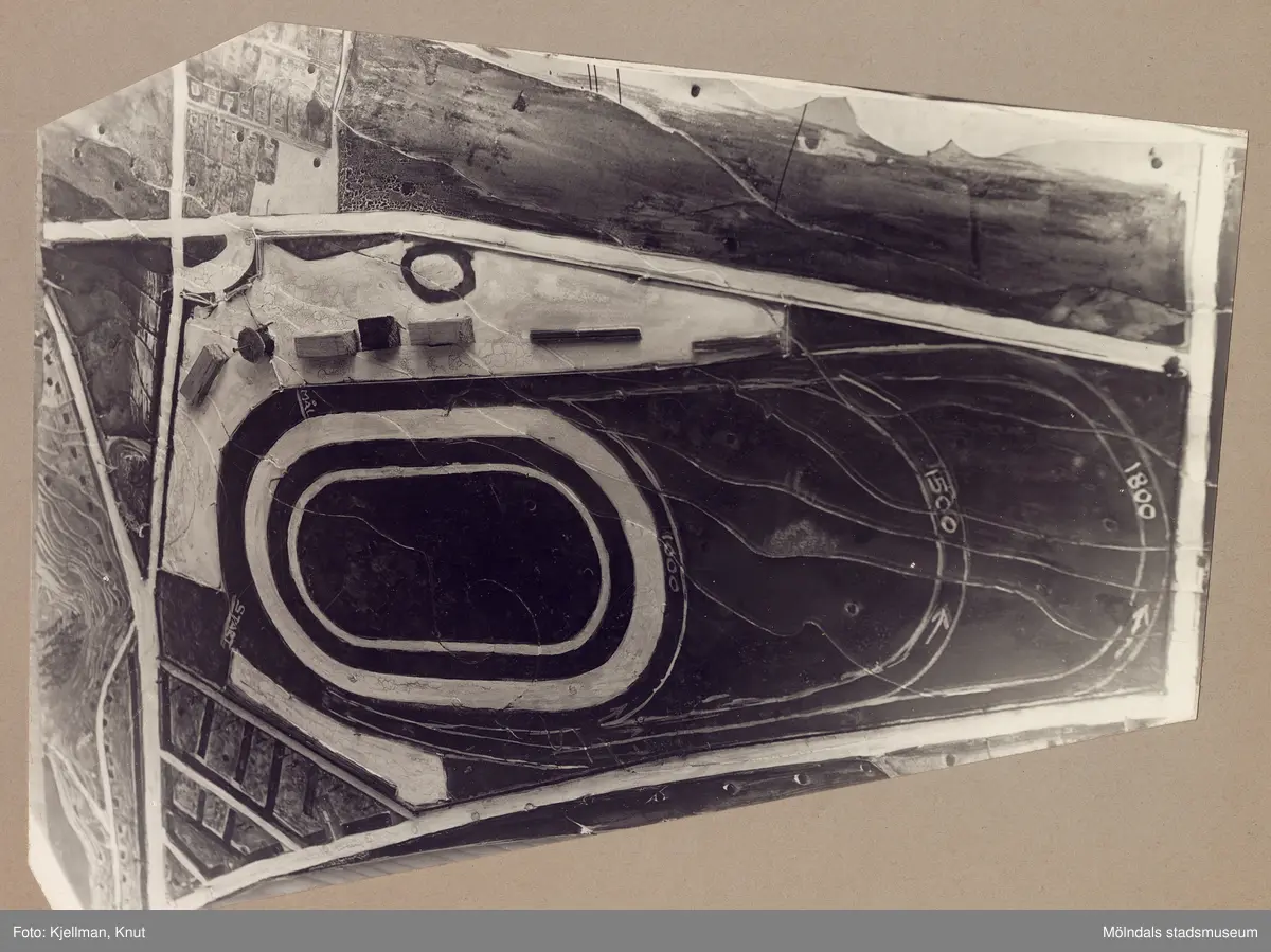 Modell av Åby Trav och galopp i Åby, Mölndal, 1935-1936. Arbetsstyrka ca 50 man. Kostnad 405000:-, Statsbidrag 170000:-. Överfört 2012 G Stålbg.