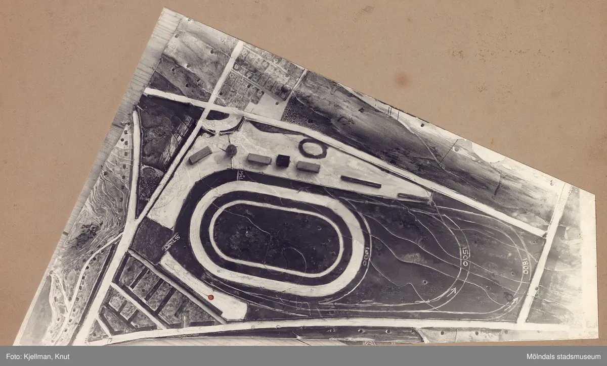 Modell av Åby Trav och galopp i Åby, Mölndal, 1935-1936. Arbetsstyrka ca 50 man. Kostnad 405000:-, Statsbidrag 170000:-. Överfört 2012 G Stålbg.
