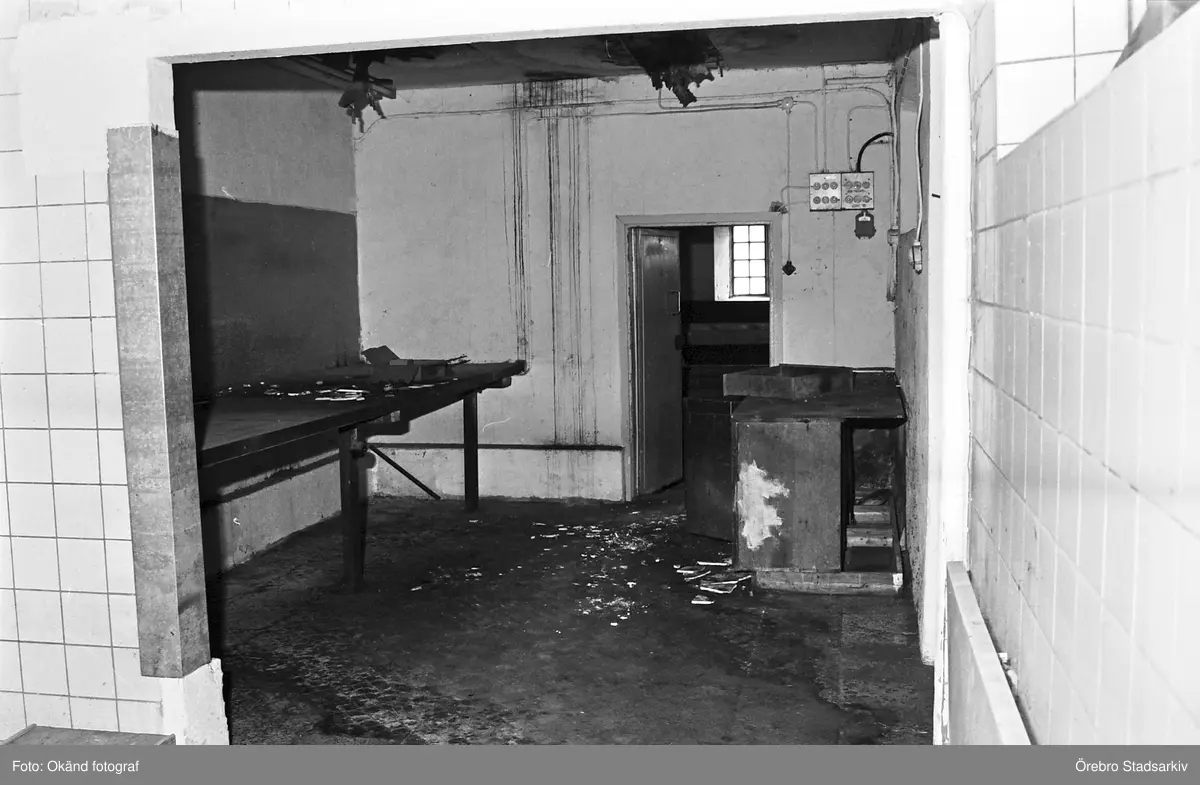 Interiör efter branden i stallet på Karlslunds herrgård, 1981