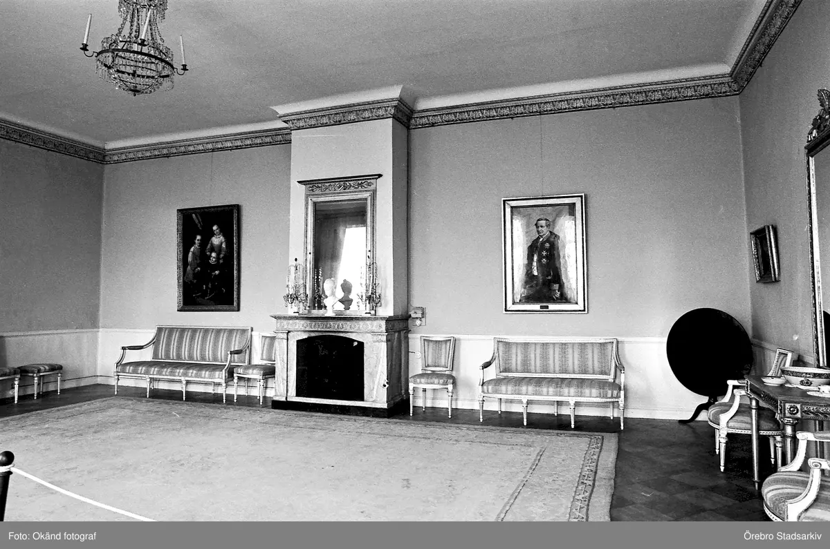 Salongen med kakelugn i huvudbyggnadens övre våning på Karlslunds herrgård, 1981