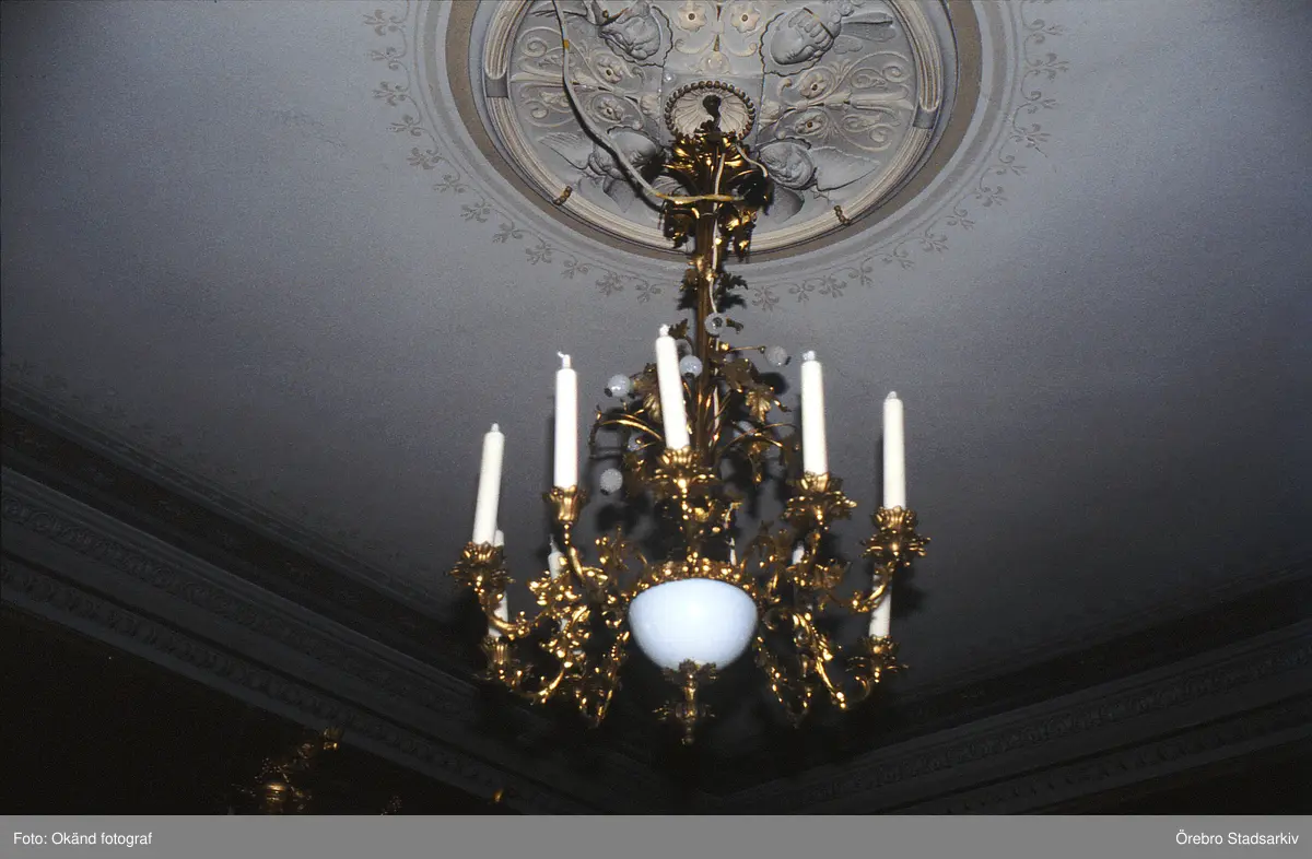 Taklampa med el och stearinljus på Karlslunds herrgård, 1980-tal