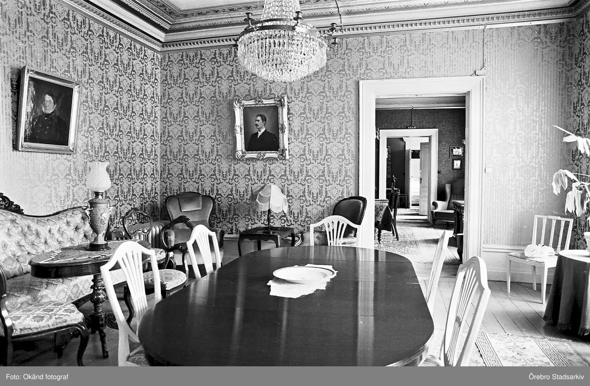 Matsalsbord med kristallkrona på Karlslunds herrgård, 1981
