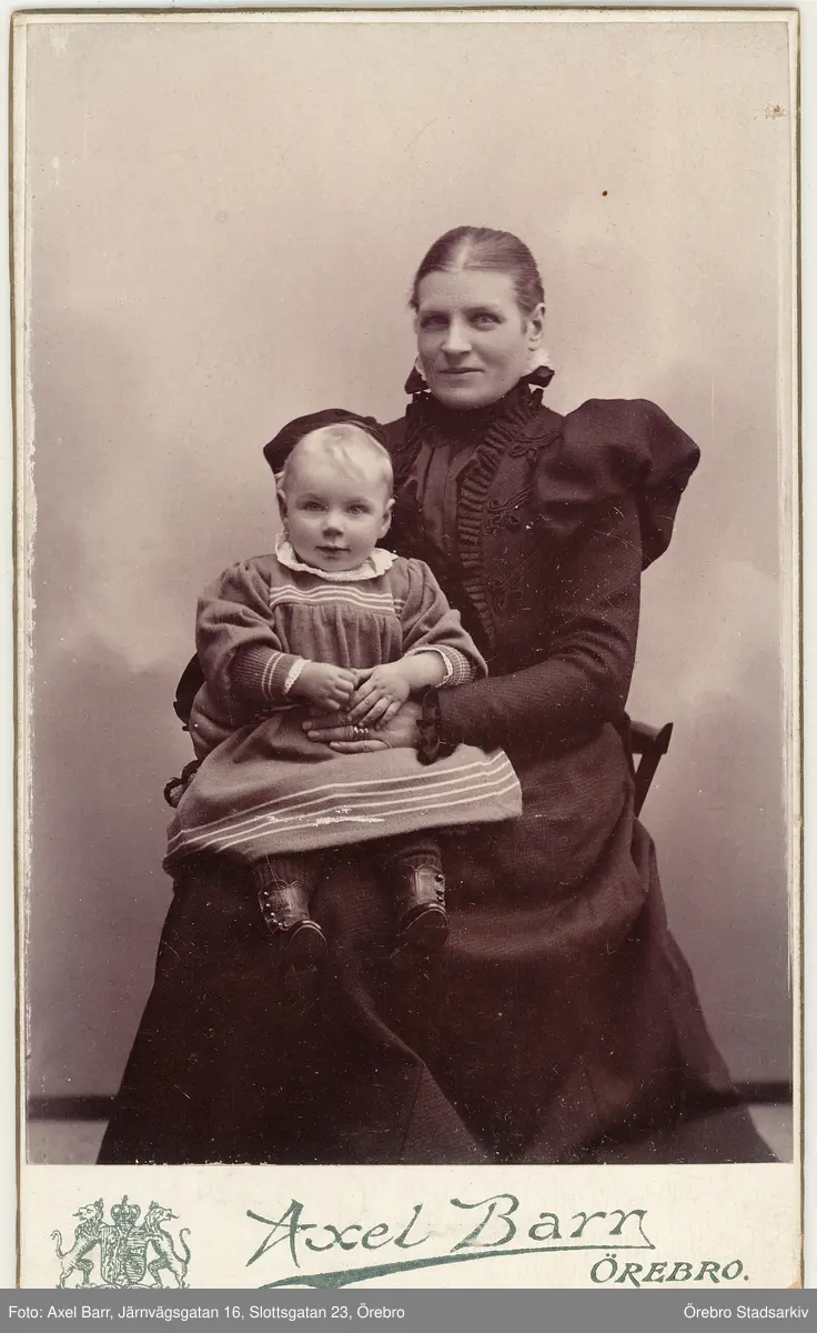 Mor med sin dotter i knät hos fotografen, 1898 ca