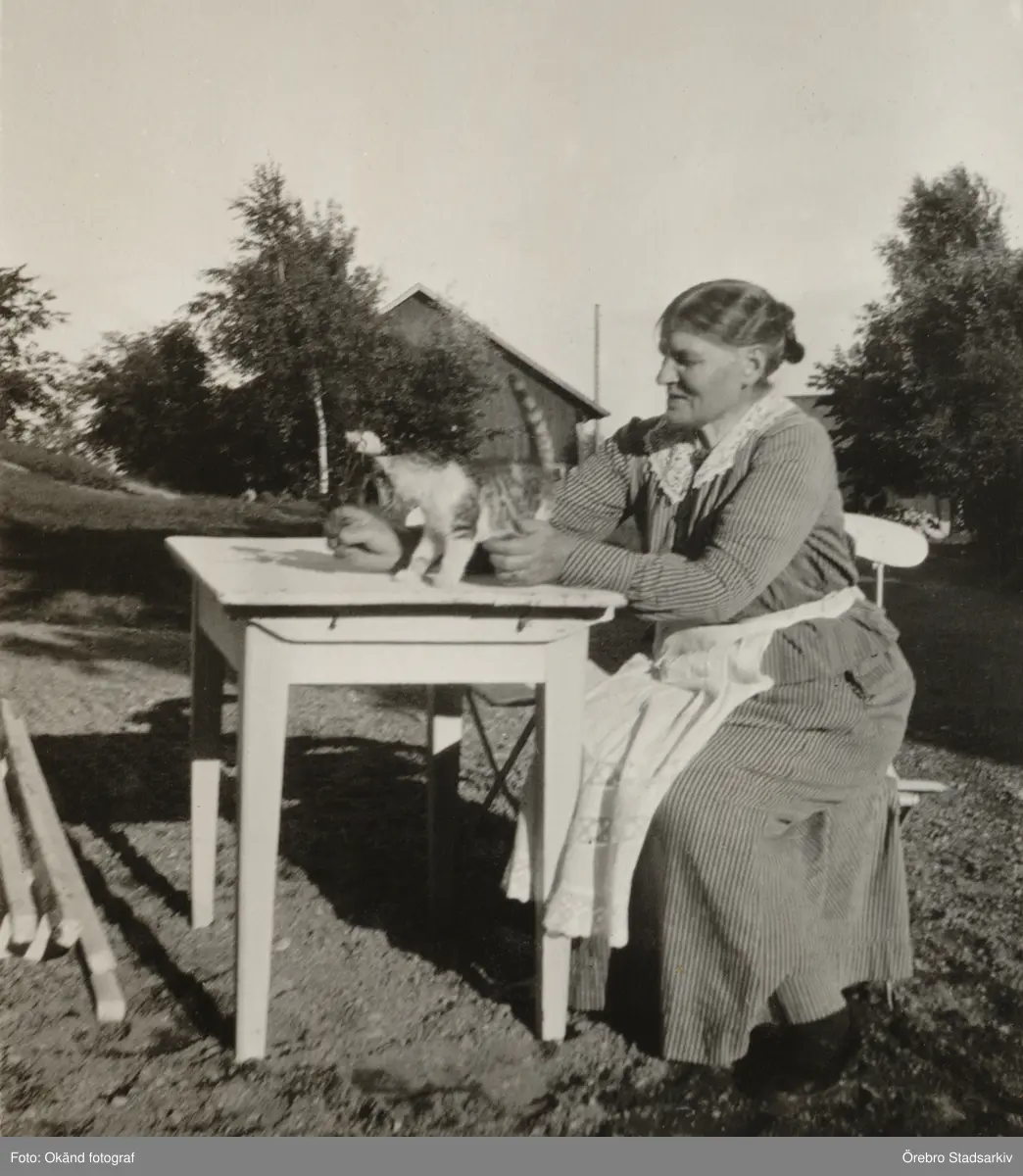 Anna med katten på bordet på Pettersbergs gård, 1919