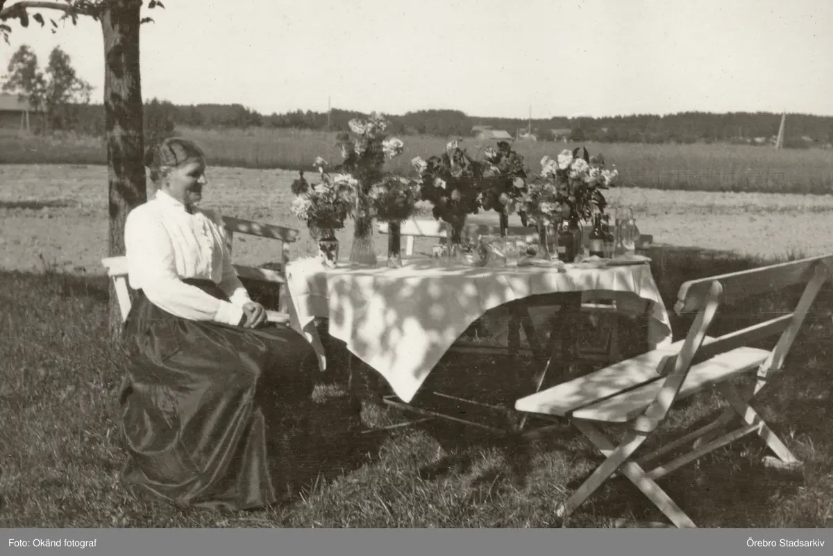 Blomsteruppvaktning utomhus på Pettersbergs gård, 1920