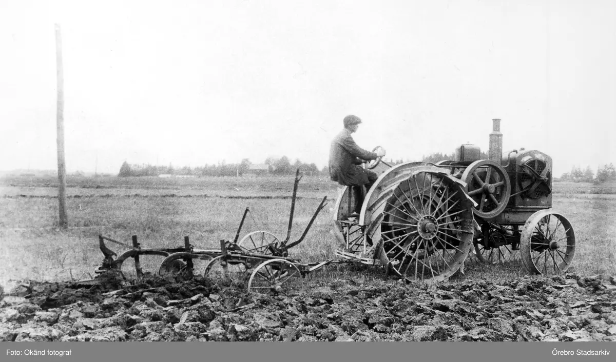 Lantarbetare kör traktor på Karlslunds herrgård, 1930-tal
