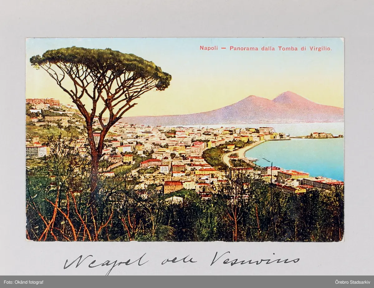 Vykort med panorama över Neapel samt Vesuvius i bakgrunden, 1913