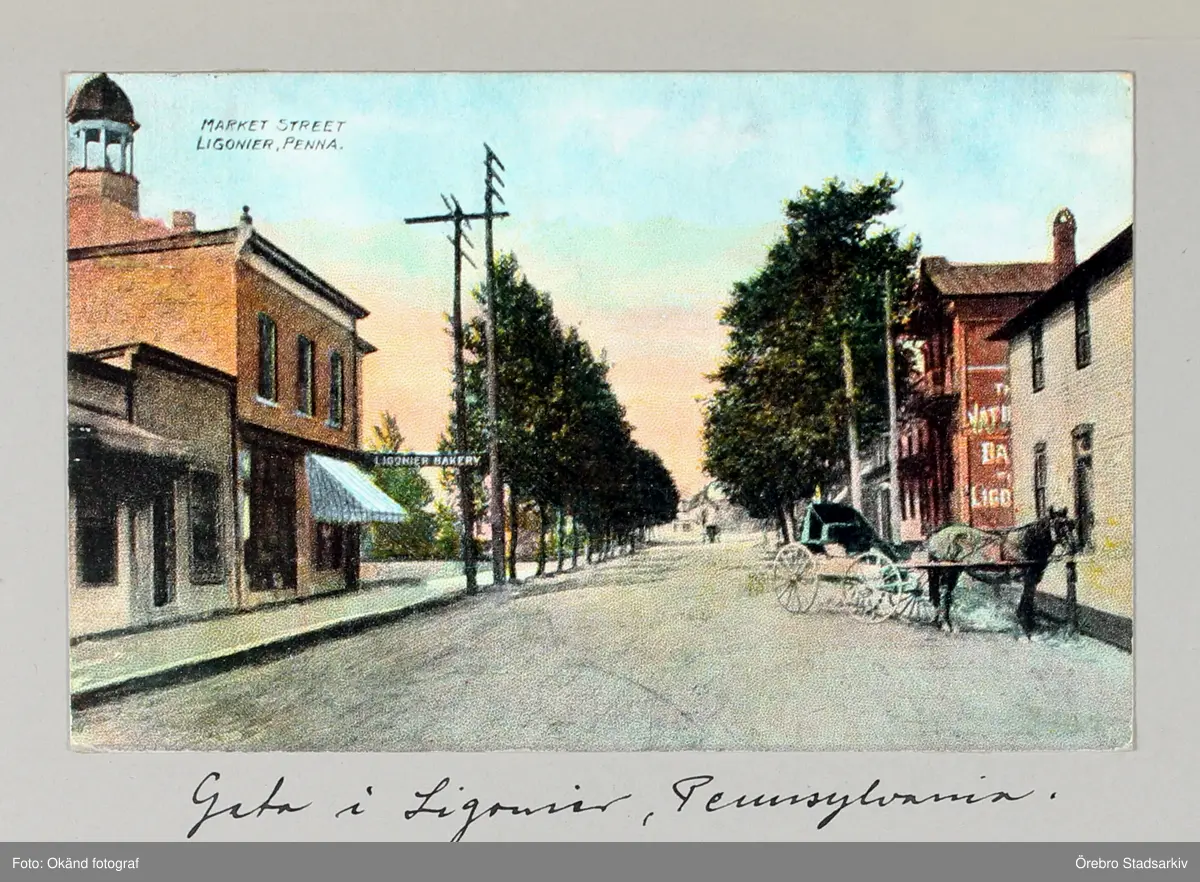 Vykort på Market Street i Ligonier i Pennsylvania, 1913