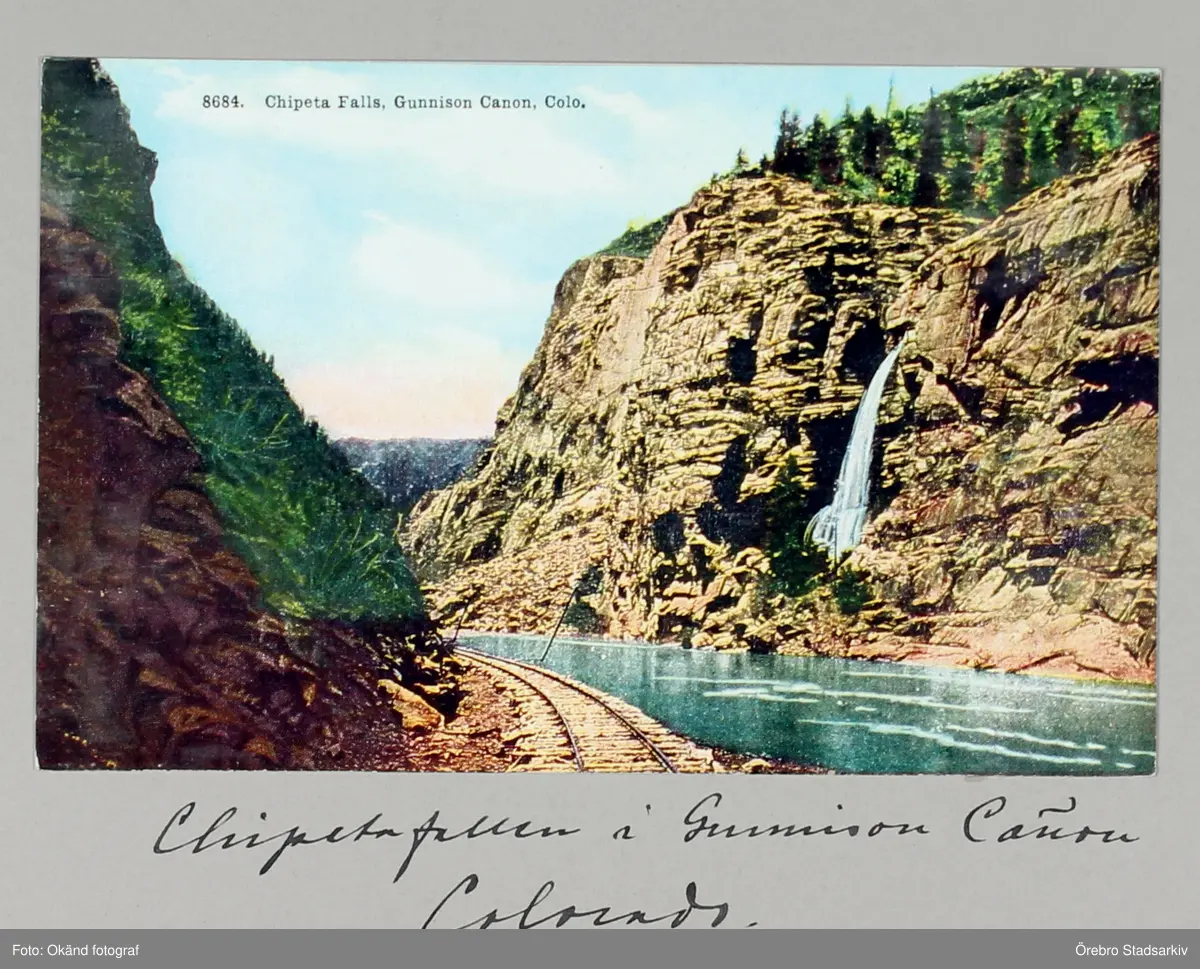 Vykort på delar av Chipetafallen i Gunnison Canyon i Colorado, 1913