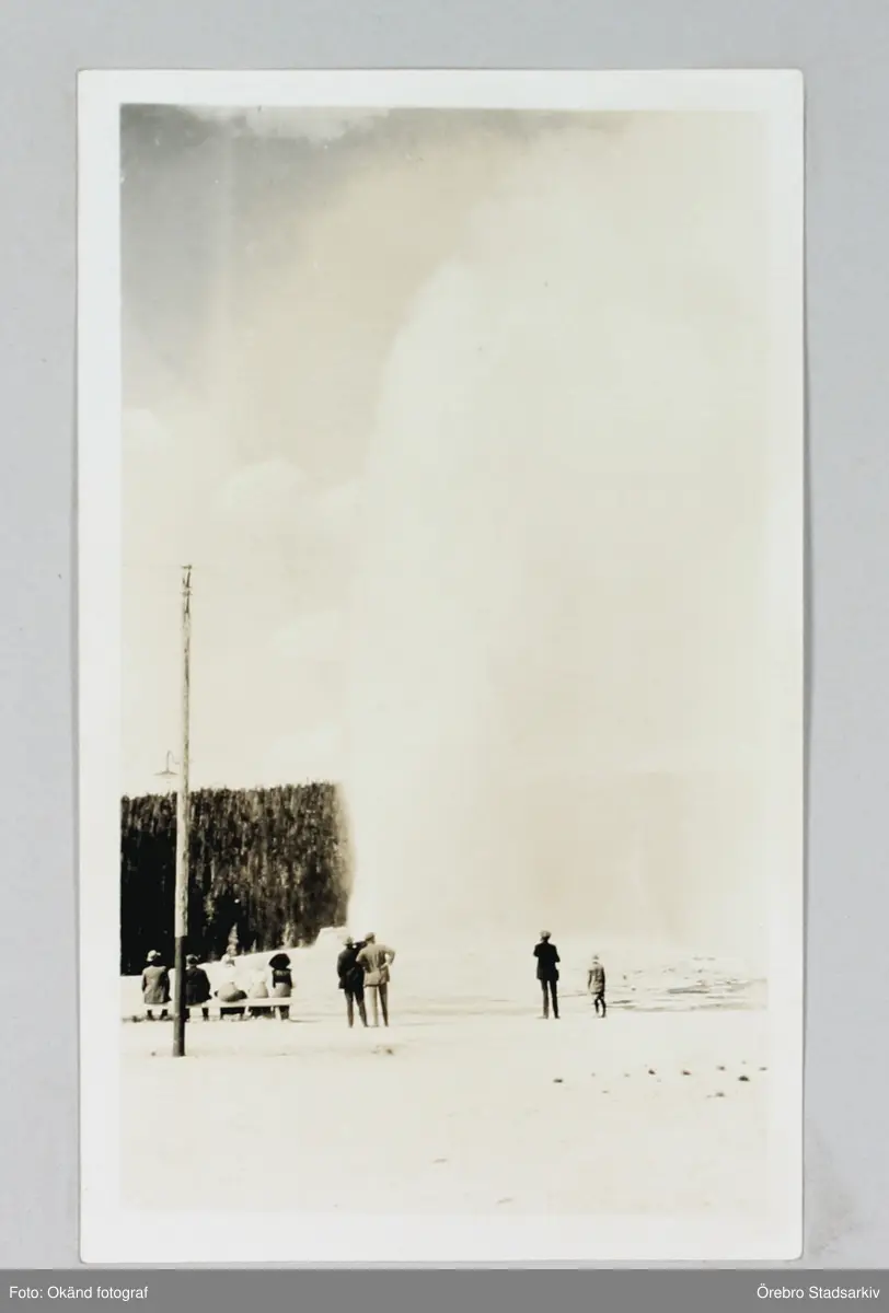 Kaskad av vatten från gejser i Yellowstone, Wyoming, 1913
