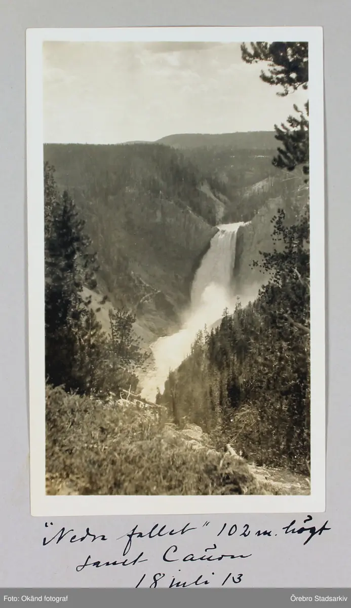 Nedre fallet, 102 meter högt, i Yellowstone Canyon, 1913-07-18
