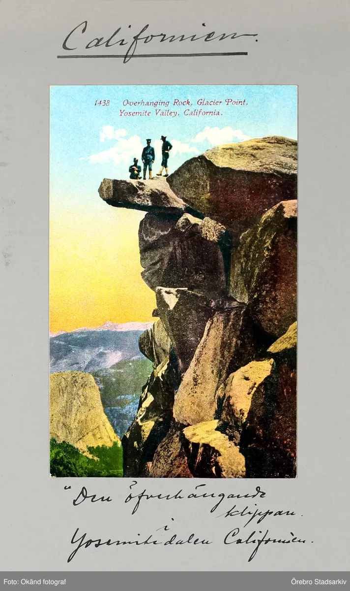 Den överhängande klippan i Yosemite-dalen i Kalifornien, 1913