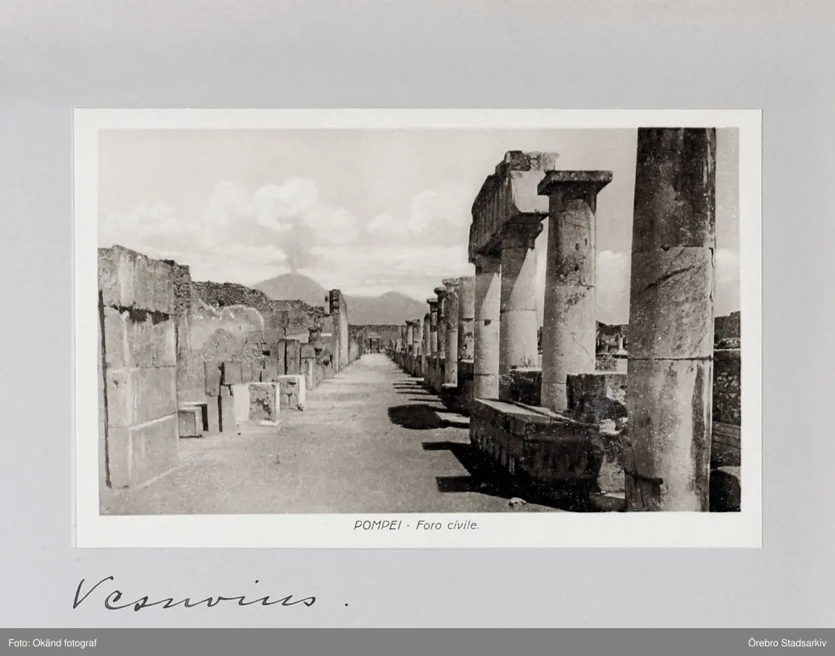 Vykort med rester av kolonner i Pompeji i Italien, 1913
