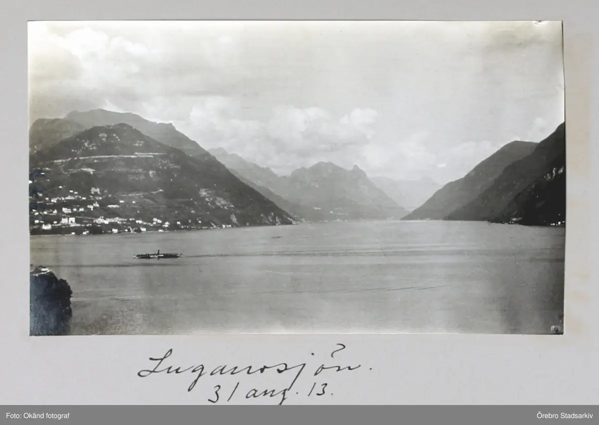Vy över Luganosjön i gränslandet mellan Schweiz och italienska Comosjön, 1913-08-31