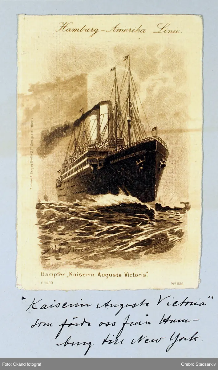 Vykort föreställande ångfartyget Kaiserin Auguste Victoria, 1913