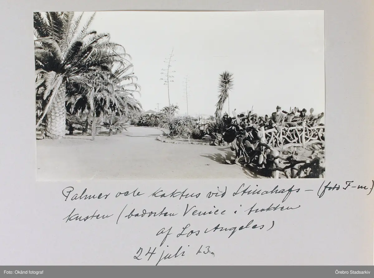 Kaktus och palmer utmed Stillahavskusten vid badorten Venice i Los Angeles, 1913-07-24