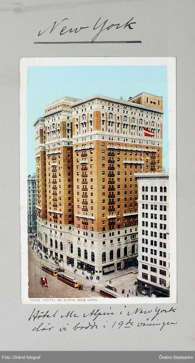 Vykort på Hotell McAlpin där Dieden bodde på 19:e våningen, 1913