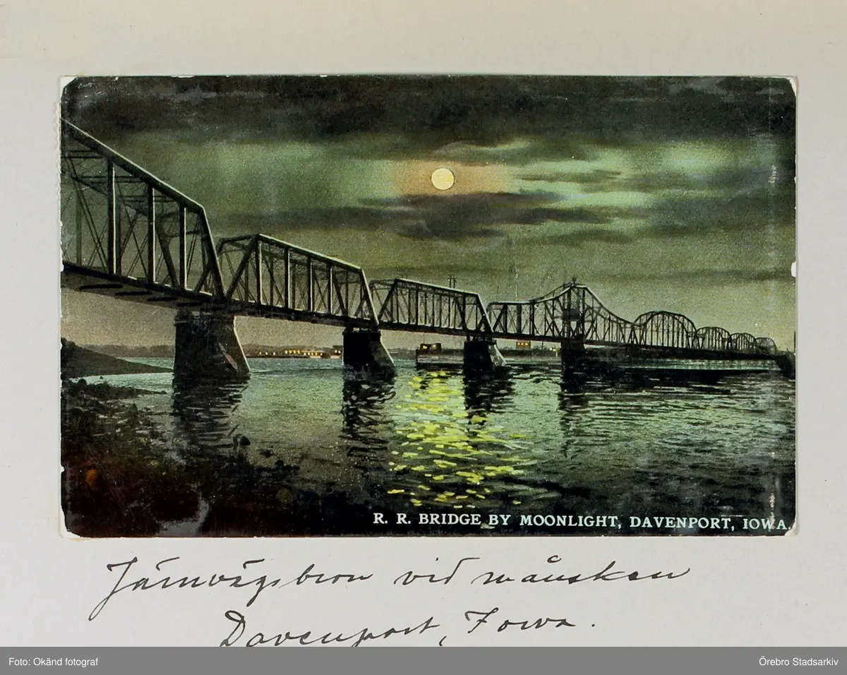 Månsken över järnvägsbro i Davenport i Iowa, 1913