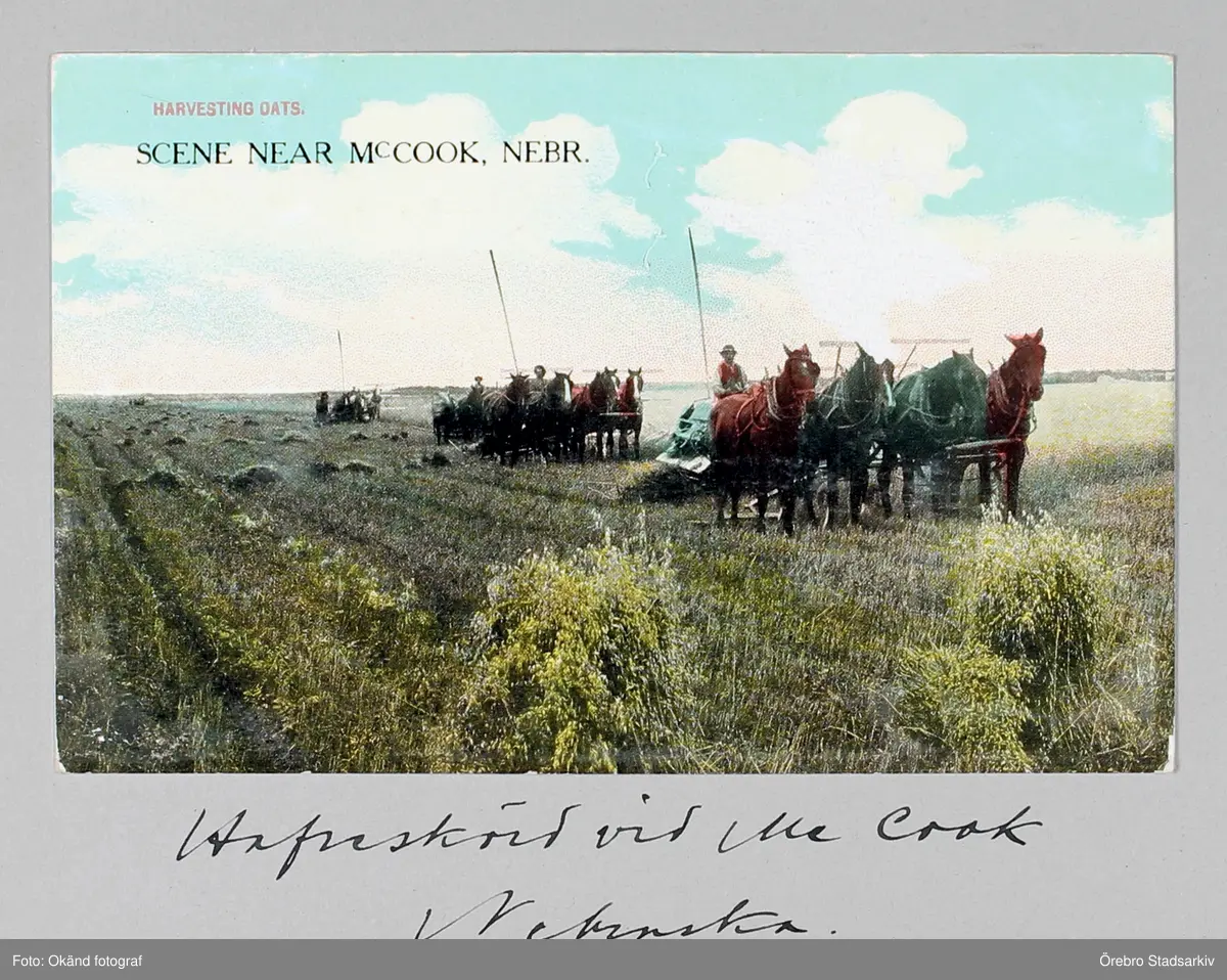 Vykort på hästdragna veteskördare i närheten av McCook i Nebraska, 1913
