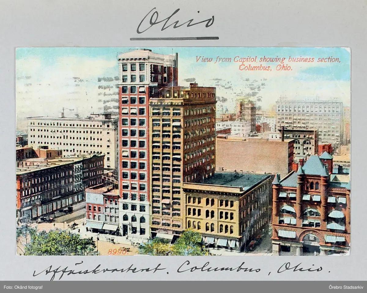 Vykort på affärsdistriktet i Columbus i Ohio, 1913