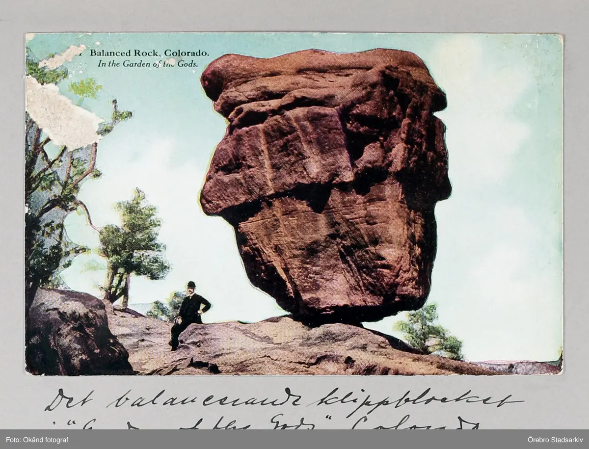 Vykort på Det balanserande klippblocket i Garden of the Gods i Colorado Springs, 1913