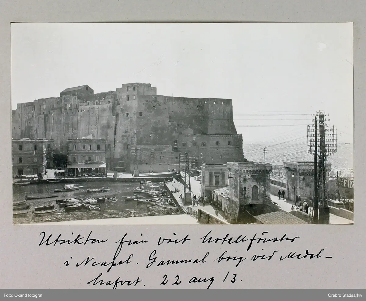 Utsikt från Theodor Diedens hotellfönster i Neapel över en gammal borg, 1913-08-22