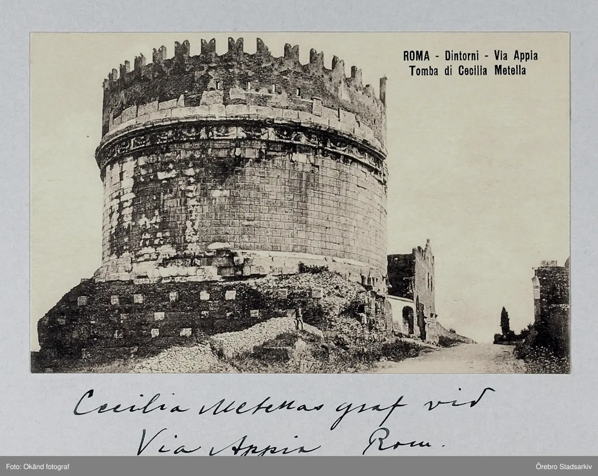 Vykort. Cecilia Metellas mausoleum längs med Via Appia utanför Rom, 1913